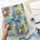 Um belo papel de embrulho adormecido com elegantes lanternas de Natal ouro. Cada lanterna é intricadamente detalhada, lançando um brilho quente e festivo que instantaneamente traz à mente noites de férias confortáveis. É perfeito para adicionar um toque de magia e brilho aos presentes de Natal!
