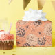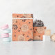 Aproveite este brilhante papel de embrulho laranja com Enfeites de natal, pinos cones e estrelas, coberto com flocos de neve brancos. Faça seu presente brilhar!