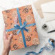 Papel De Presente Laranja Brilhante com decorações, flocos de neve,