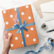 Papel De Presente Laranja Clássico e Bolinhas Branca Quebra Invioláv