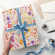 Papel De Presente Laranja Roxo Boêmio Folhagem Flores Silvestres Cas