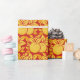 Laranjas e flores estilizadas de vermelho e ouro que embrulham papel.