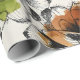 Large abstract flowers in pen and ink with alcohol washes of burnt orange, avocado green, and mustard yellow decorate this gift wrap. AI-generated by IveyCottage.