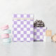 Arte abstrato digital de lavandas e quadrados brancos em uma formação controlada.