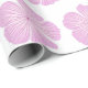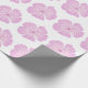 Este papel de embrulho apresenta um padrão cor-de-rosa florescente de Lavatera sobre um fundo branco.