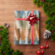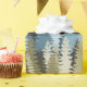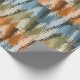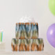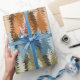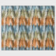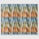 An illustration of layered pine trees arranged in horizontal bands, featuring cool blue, khaki, and orange shades.