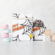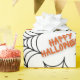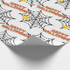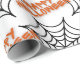 Celebrar o Halloween com um legal papel de embrulho com teias de aranha e aranhas sobre fundo branco. Orange Happy Halloween.