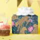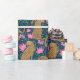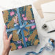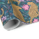 Leopardos cercados por uma luxuosa folhagem da selva e flores roxas e rosa vibrantes.
