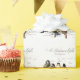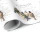 Características deste design quatro pássaros bonitos que sentam-se em um ramo de árvore com uma letra francesa do vintage no roteiro no fundo.