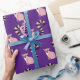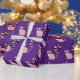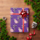 O papel de embrulho de presente bonito é roxo com um padrão de lêmures de anel para amantes de os animais.