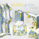 Papel De Presente Limas e Flores Fatiadas em Aquarela Azul