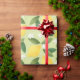 Papel De Presente Limões e Flores Brancas em Fundo Verde