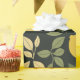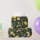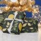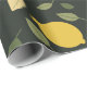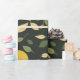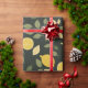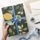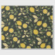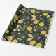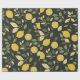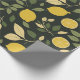 Limões iluminados e padrão de folhas num fundo verde escuro.