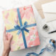 Papel de embrulho de lindo chá de panela em um desenho de flores em aquarela coral e rosa. O fundo coral pode ser trocado para qualquer cor, adequado para qualquer ocasião especial.