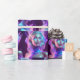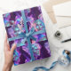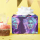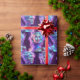 Embrulhar presente para o aniversário ou qualquer evento em matizes azuis e roxos com uma linda mulher envolvida em gelo vítreo.