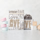 Palavras de tipografia de amor em diferentes tipos de letra, tons bege dourado design moderno em fundo branco, para dia dos namorados, aniversário, festa de debutante, adolescente, chá de noiva, nascimento de bebê, presentes de despedida de solteira