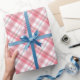 Papel De Presente Lindo Xadrez de Cinza Vermelho Rosa