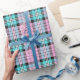 Papel De Presente Lindo Xadrez Escocês Turquesa Rosa