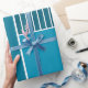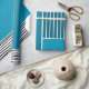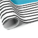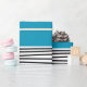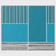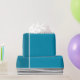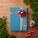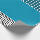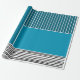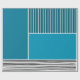Este papel de embrulho tem um design geométrico de um retângulo teal grande no canto superior esquerdo, listras teais mais escuras no canto superior direito, um retângulo teal menor mais claro abaixo das listras e linhas pretas na parte inferior. Se você gosta do design, mas prefere cores diferentes, me mande mensagem.