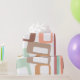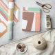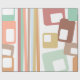 Este papel de embrulho tem uma design de linhas e retângulos modernos do século médio em tons retrorados de vermelho, amarelo, laranja, azul, verde, marrom e rosa.