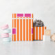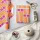 Este papel de embrulho tem uma design de linhas verticais laranja moderna do século médio, com retângulos cor-de-rosa acima, repetidos sobre o design.