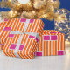 Papel De Presente Linhas Laranja e Caixas Rosa
