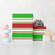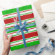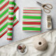 Este design de papel de embrulho apresenta um Natal e feriados com os mesmos temas de padrão verde, branco e vermelho listrado. Pode ser divertido usar papel de embrulho como este quando se preparam presentes ou presentes para celebrar um aniversário, um casamento, um aniversário ou qualquer outro evento.