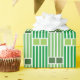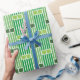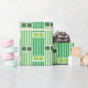 Este papel de embrulho tem uma design moderna do século médio de linhas verdes verticais com retângulos acima, repetidos sobre o design.