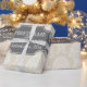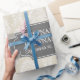 Papel De Presente Linho Bege e Charcoal Padrão Damasko