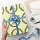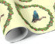 Um periquito linearizado aparece dentro a coroa de Natal neste belo papel de embrulho de Natal