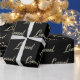 Sehr schönes edles personalisiertes Geschenkpapier im whitegold Lettering Look auf schwarz für Lionel.
