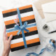 Papel De Presente Listras alaranjadas, pretas, brancas