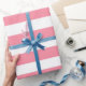Papel De Presente Listras Brancas e Rosa Suaves