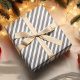 Papel De Presente Listras Cinza Brancas Dourado Texto Natal Aniversá