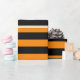 Um papel de embalagem projetado com um padrão listrado preto e laranja em tamanho grande. Personalize a cor laranja de uma maneira fácil.