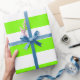 Papel De Presente Listras Largas Horizontais Verde Grama e Branco