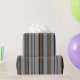Um teste padrão de listras coloridas silenciado tans dentro, azul e cinzas em um fundo preto