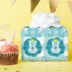 Um papel de padrão de gingham branco e azul muito bonito embrulhando com leões azuis!