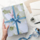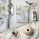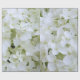 A hidrangea é um arbusto glorioso e florescente. As flores podem ser cor-de-rosa, roxa, azul, creme e, dependendo do solo, combinações mágicas dessas cores. Em algumas variedades de hidrangea, o pH do solo determinará a cor. O azul requer solo ácido, com um pH de cerca de 5,0 a 5,5. O cor-de-rosa ou o roxo requerem um solo alcalino, com um pH de 6,5 a 7,0. O solo neutro resultará geralmente em pétalas de cor creme, mas pode também obter o que alguns chamam de "indefinido" (azul e roxo). Como aglomerados de pequenas borboletas, os pequenos floretes se juntam em esferas atordoantes. Diz-se que a hidrangea representa a graça, a amizade, a beleza esbanjada e a preservação do amor que dura para sempre. Este último sentimento é provavelmente a razão pela qual as híbridos brancos são tão populares para buquês de noiva. O padrão neste belo papel de embrulho repete a cada três pés lineares, mas cada presente embrulhado será coberto por esses espetaculares florins brancos. É uma excelente escolha para aniversários, aniversários e Dias de as mães e uma boa opção para chás de panela e presentes de casamento.