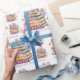 Celebre os momentos mais preciosos da vida com nosso Papel de Embrulho Temático Livro de Histórias: Um Novo Capítulo, projetado para adicionar um toque caprichoso e emocionante aos presentes de casamento ou chá de bebê. Com ilustrações encantadoras de livros empilhados, flores delicadas e tipografia divertida, este papel de embrulho prepara o cenário para uma história de amor e novos começos