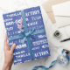 Folha de presente azul divertida impressa com diferentes gêneros de livros, incluindo ficção, horror, fantasia, suspense e biografia.