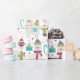 Llama have some Christmas fun holiday paper includes an adorable llama pattern on white background, a teal background with snowflake pattern, and a solid pear green. Llamas and birds wearing knit hats, cactus, candy canes, and wrapped gifts within pattern.
