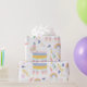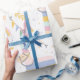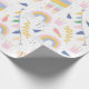 Este papel de embrulho bonito e moderno apresenta lhamas e arco-íris em cores pastéis. É o papel perfeito para um presente de chá de fraldas ou aniversário de uma criança.
