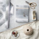 Belo papel de embrulho de férias com um lobo uivante na neve.