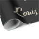 Sehr schönes edles personalisiertes Geschenkpapier im whitegold Lettering Look auf schwarz für Louis.