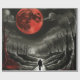 A lua de sangue iluminou o caminho sobre a floresta escura na noite.