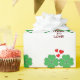 Sorte no amor. Desenhos de trevas de quatro folhas com formas cardíacas flutuando sobre elas.