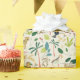 Design de padrão Whimsical que apresenta a exuberante vida vegetal da selva e ilustrações animais, incluindo tigre, papagaio, preguiça, macaco e cobra.