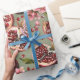 Papel De Presente Lush Pomegranate Fruit and Flowers Pattern