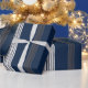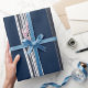 Papel De Presente Lux Christmas White Stripes on Blue Wrappaper
